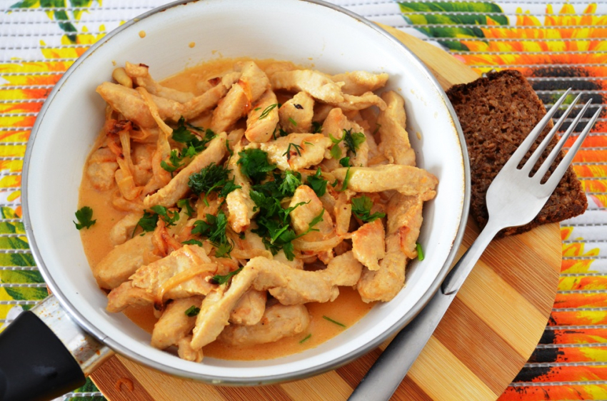 Классический рецепт бефстроганов из куриного филе со сметанным соусом