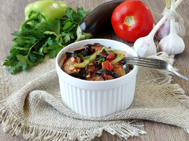 Как приготовить баклажаны, тушеные на сковороде с томатами, зубчиками чеснока и зеленью