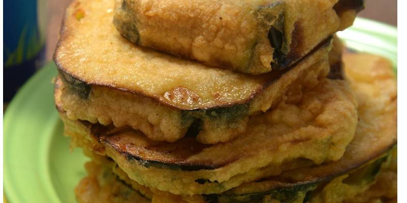 - Окончательно подготовленные кольца из баклажан обвалять в муке и обжарить с обеих сторон в растительном кипящем масле до румяной корочки.