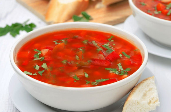 - Обед – полезный, насыщенный, сытный. Обязательно первое блюдо: супчик без жирной поджарки, желательно вегетарианский. Можно легкие щи, полезный вариант борща, овощной или куриный бульон. На второе – салат из сырых овощей, либо гарнир – каша, бобовые, квашеная капуста. Кусок паровой рыбки или птицы.