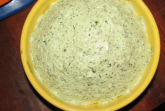 - Еще одна здоровая и вкусная «намазка» — это творог с солью и рубленной зеленью.