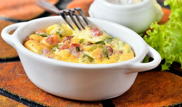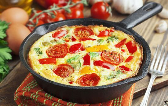 - Не добавляйте сырые овощи. Перед тем как добавить овощи в яичную смесь, всегда обжаривайте их на масле, чтобы они выпустили сок. С помидоров необходимо предварительно снять кожицу.
