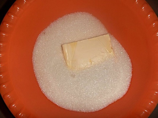 - Нам понадобится размягченное масло, поэтому заранее достанем его из холодильника. Кстати, его можно заменить сливочным маргарином.