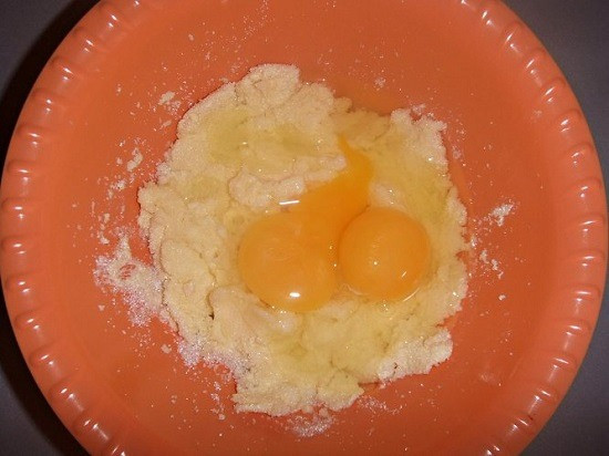 - Добавим в масляно-сахарную смесь яйца и, не ленясь, поработаем миксером либо блендером.