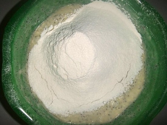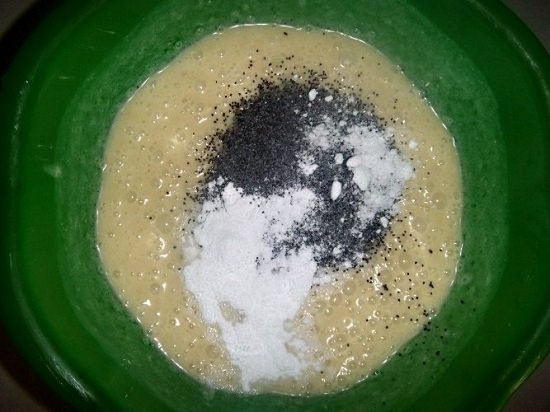 - Добавим в тесто ванилин, разрыхлитель и мак. Последний ингредиент можно исключить из списка, если вы его не любите.