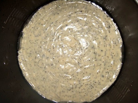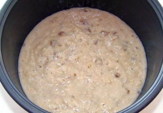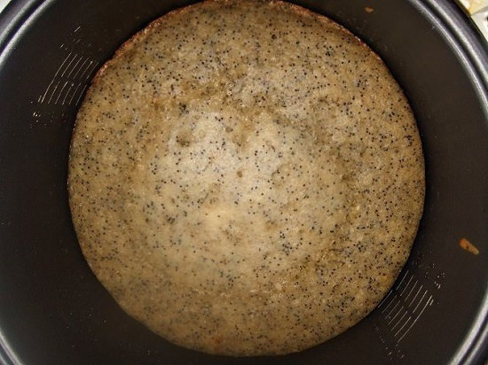 - Мультичашу смажем маслом сливочным и выльем в нее тесто. Выставляем режим «Выпечка» и в течение часа можем заниматься своими делами.