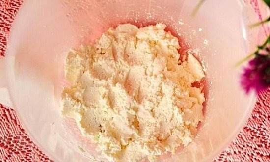- Теперь нам нужно превратить зернистый творог в пастообразную смесь. Мы можем это сделать вручную с помощью сита или измельчить творог блендером.