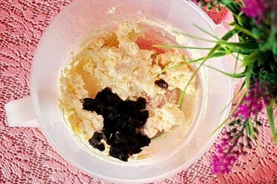 - Измельчим чернослив небольшими кусочками и добавим в творожное тесто.