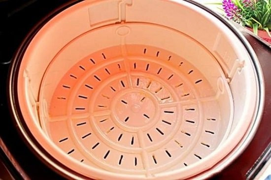 - решетку мультиварки смазываем маслом, а в контейнер наливаем воду.