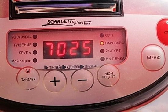 - Закрываем крышку гаджета и выбираем соответствующий программный режим. В нашем случае это – «Пар». Выставляем таймер на 25 минут.