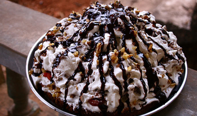 Перед подачей к столу торту «Графские развалины» необходимо дать возможность пропитаться кремом. Также крем должен застыть, иначе нарезать и есть торт будет неудобно.