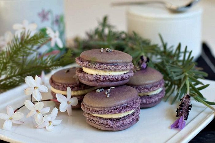 Нежное лавандовое пирожное – совершенство в деталях! Жасминовые макарон довольно хрупкие, их очень легко поломать, поэтому хранить такие пирожные нужно в контейнере, разместив в один слой. Когда заготовки испекутся, не стоит спешить снимать их из противня или силиконового коврика, пусть сначала остынут, так как горячие они буквально раскрошатся в руках.Ингредиенты