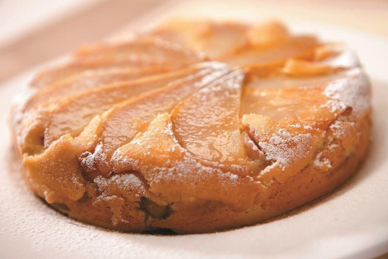 - Достаем из мультиварки, слегка остужаем и подаем. Шарлотка с грушами идеальна в горячем виде с шариком ванильного мороженого и листиком мяты. Попробуйте и убедитесь сами.
