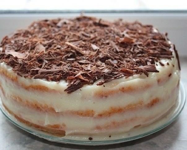 - Когда крем готов, а торт остыл, можно смазать бисквит кремом, и оставить остывать. Через пару часов торт пропитается кремом.