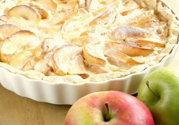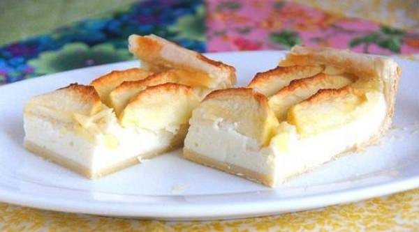 Яблочный пирог из слоеного теста со сметанной заливкой
