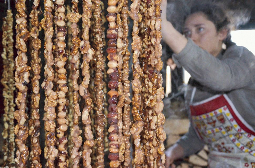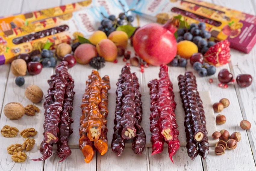 Чурчхела – рецепт национальной грузинской кухни, это сладость приготовляемая из орехов (грецкого, фундука или миндаля) и виноградного сока, доведённого в результате специального приготовления до киселеобразного состояния (называемого татара) и затем густеющего на орехах.