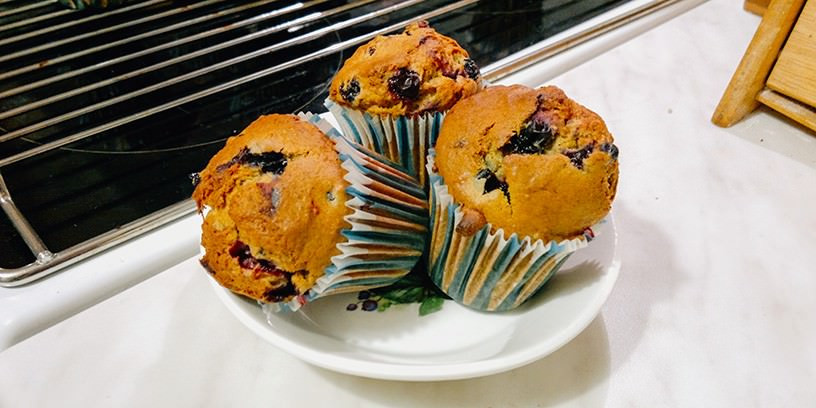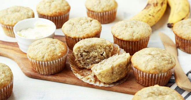 В этом рецепте смело можно сократить количество масла со 125 г до 80 г, если добавить еще половину банана. Банановое пюре придаст тесту необходимую вязкость и влагу, тем самым сделав маффины более диетическими.
