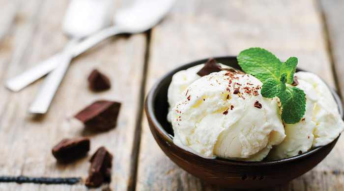 Консистенция крема. Получившаяся масса для замораживания должна быть как сметана. Если провести спичкой линию на ложке, которой вы помешиваете крем, то она не должна растекаться. Чем жиже крем, тем более водянистым и ледянистым получится мороженое.
