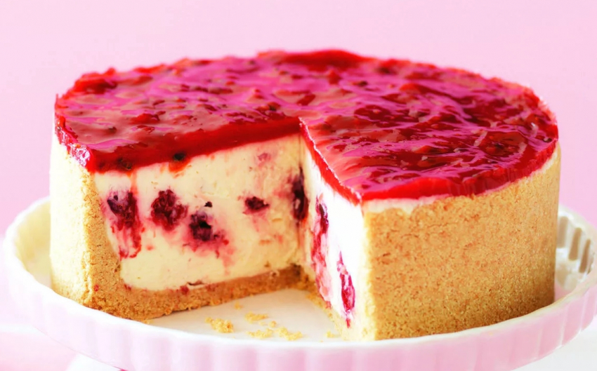 - Когда суфле «схватится», сверху осторожно вылить оставшийся малиновый сироп с желатином. Поставить в холодильник для окончательного застывания. Перед подачей украсить торт малиной и листиками мяты. Приятного аппетита!