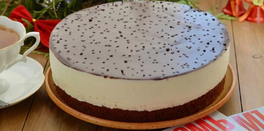 - Делаем шоколадный мусс. Чтобы его приготовить, повторяем рецепт первых двух слоев, только используем шоколадный творожок и добавляем в мусс 2 ложки какао. Заливаем последний слой, как указано на фото, и оставляем до полного застывания в холодильнике. Трехслойный торт-суфле готов. Украсить его можно сливочным кремом, но и без него он смотрится превосходно.