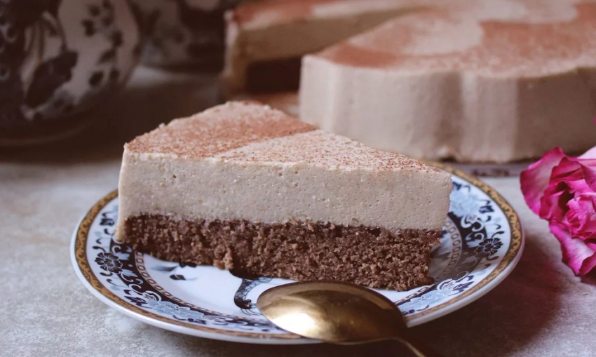 - В отдельной емкости взбить белки и пару ложек сахара до пиков, аккуратно перемешать с кремом. Корж переложить опять форму, залить кофейный торт-мусс кремом, убрать его на ночь в холодильник, провести ножом вдоль бортика и осторожно вынуть торт из формы.