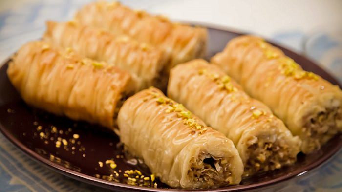 В древности пахлава подавалась только султанам и богачам — для бедняков блюдо было недоступно. По традиционному рецепту десерт готовят из тонких, как бумага, листов теста, промазывают их маслом или жиром и выкладывают слоями. Начинка пахлавы делается из молотых или порубленных орехов, обычно грецких, заранее пропитанных специями, медом или сахарным сиропом и розовой водой. Лучше, если орехи сначала поджарить в духовке или на сковороде и добавить в них корицу и кардамон.Выпекают пахлаву разной формы: прямоугольной, круглой, квадратной или в форме рулетов. Приготовление пахлавы дома займет много времени, но ради идеального сочетания сладости и ароматных специй можно постараться. Блюдо готовят не только в Турции, Азербайджане, Греции и всех странах Средиземноморья, но и в Великобритании и Америке, где ее поливают шоколадом или кленовым сиропом. Пошаговые рецепты пахлавы и фотографии к ним подготовили наши авторы.