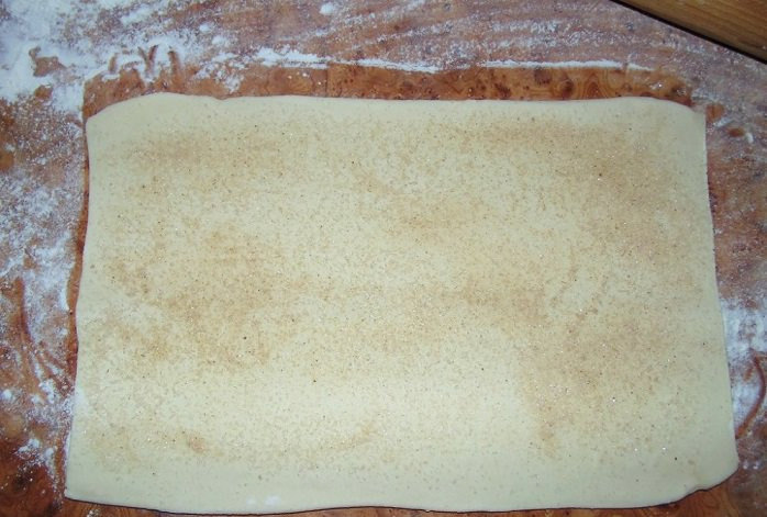 - Итак, посыпаем слой теста сахарно-ореховой смесью. Дальше раскатываем и также укладываем на дно противня еще один слой теста и также укладываем сахарно-ореховую смесь. Последний слой теста будет потолще, чем все остальные.