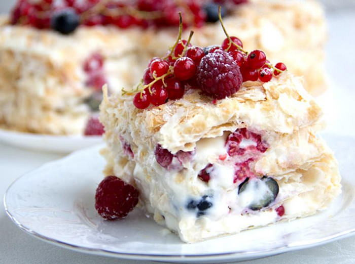 Торт “Наполеон”, любимый десерт многих россиян, готовят из слоеного несладкого теста и пропитывают сладким нежным кремом (заварным, сметанным или из сгущенки с маслом). Получается невероятно вкусное лакомство, которое заслуженно пользуется большим успехом. Дополнительными ингредиентами могут быть кедровые, грецкие орешки, фундук, кешью.