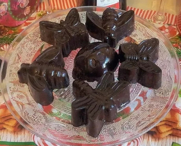 - Вынув из холодильника форму, наружную строну щербета выровнять острым ножом и покрыть растопленным шоколадом. Шоколад быстро застыл. Щербет легко извлечь из ячеек. Приятного аппетита!