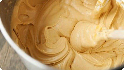 В большой удобный сосуд кладем размягченное сливочное масло. Масло должно стать мягким, но ни в коем случае топленым или расслоившемся, взбиваем миксером. Постепенно добавляем заварную основу. Взбиваем крем до однородности. Он увеличивается в объеме, становится воздушным. Обычно на все это уходит несколько минут.