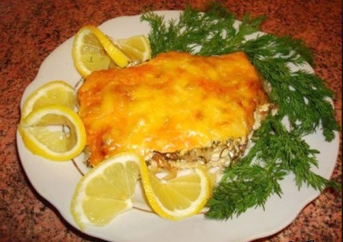 3.Противень тщательно смазать сливочным маслом, уложить туда рыбу и запекать в духовке 5 минут, потом перевернуть её на обратную сторону и запекать также 5 минут.