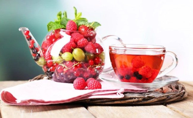 - Столовую ложку чая заваривают в литре воды, в то время как выбранные ягоды и фрукты измельчают в блендере.