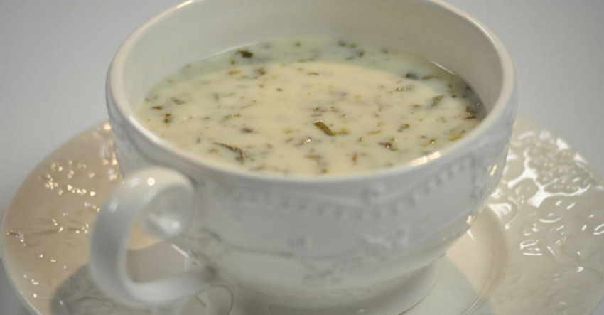- Дальше кастрюлю с мацони переместить на плиту, на небольшой огонь. Выложить туда смесь крупы с луком. Закипятить, все время размешивая, чтобы кисломолочный напиток не свернулся. Так варить минуты 3, после чего убавить огонь до самого маленького и продолжить томить армянский суп около десяти минут, посолить.