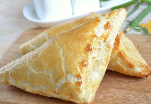 Хачапури с творогом из слоёного теста