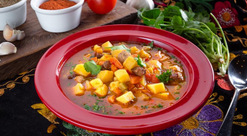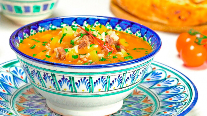 Сытный и пряный суп готовят для дорогих гостей. Большое количество специй, пряностей, острого перца и зелени придает супу особый вкус.Ингредиенты: