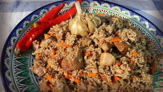 Анекдот на тему плова: Поспорили значит два кулинара в Узбекистане. Один говорит другому — сможешь приготовить плов из равного кол-ва ингредиентов, по 1кг. каждого? Второй отвечает — конечно смогу! -Хорошо. Первый поэтапно дает ему 1 кг. лука, тот обжаривает. Затем 1 кг. мяса, тот обжаривает. Затем 1кг. моркови, тот обжаривает. Всё идет хорошо!.. Затем 1 кг. риса. Всё отлично… Плов почти готов. И в конце, приносит 1 кг. соли. В общем первый проспорил )) А-ха-ха…