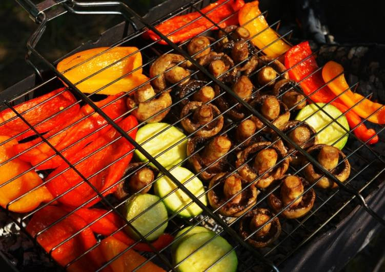 - Овощи промыть, нарезать, сложить в пакет, залить в него соус-маринад, завязать пакет и встряхнуть. Оставить на полчаса, затем можно запекать, уложив на решетку или нанизав на шпажки.