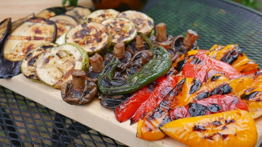 Самые разнообразные овощи можно запекать как в целом виде (очищая их впоследствии и нарезая, как для приготовления аджапсандала), или нанизать на шампур, предварительно порезав на небольшие порционные кусочки. Предварительно можно замариновать (иногда хватает простых специй с подсолнечным маслом). Лучше же полить ароматной заправкой или соусом после приготовления.Несколько советов по запеканию овощей — гриль на мангале