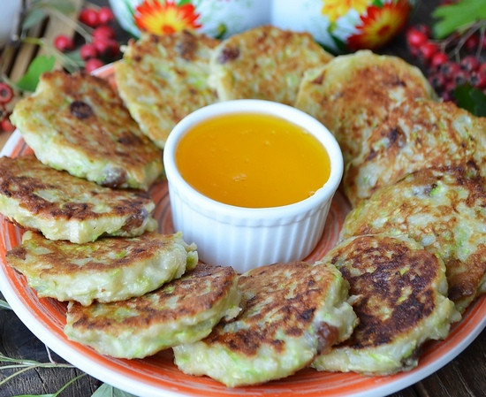 Сладкие диетические кабачковые оладьи в духовке: рецепт с яблоком и изюмом