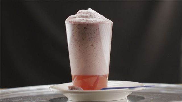 - Итак, смешиваем 50 мл яблочного сока, 20 мл вишневого сока и 2 г спум-смеси. Остается насытить смесь кислородом, и чудесный невесомый напиток готов.