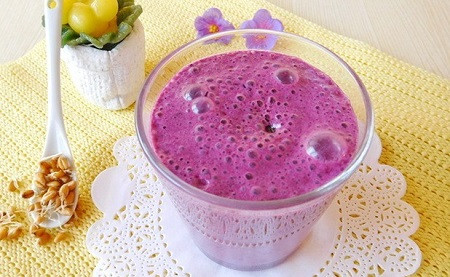 - В миксере на средней скорости до однородной массы смешиваются любые ягоды (200 г.) – вишня без косточек, малина, клубника, стакан молока и две столовые ложки меда.