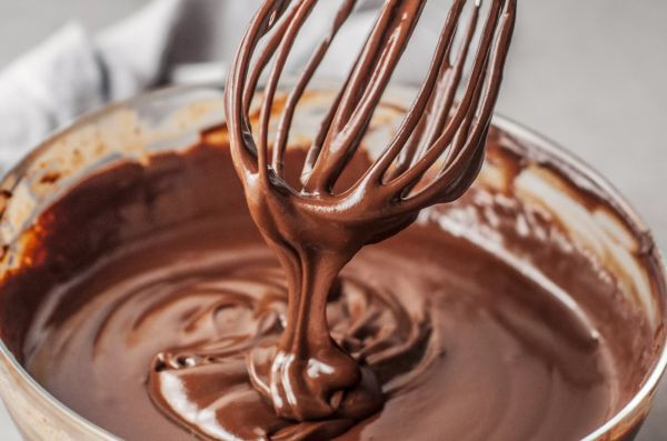 - Чтобы развести слишком густой ганаш добавьте в него по капле сливок, каждый раз перемешивая и пробуя на стакане. Чтобы сделать более густым — растопите кусочек шоколада.