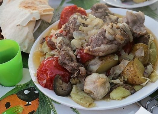 Богатое кавказское блюдо, которое обязательно готовить в большом казане на открытом огне. Лучше это делать на природе. Тогда получится просто восхитительный вкус и аромат.