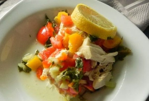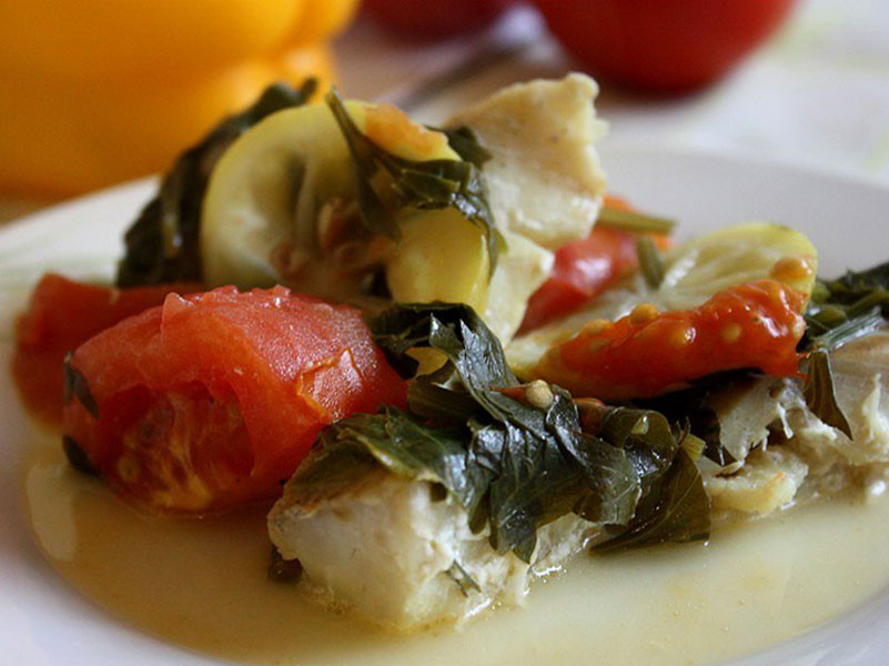 Уточнение: продолжительность приготовления, естественно, можно варьировать в зависимости от степени готовности рыбы, но овощи должны остаться «живыми», чуточку хрустящими, аль денте.
