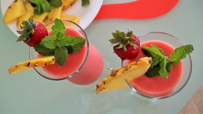 Классический рецепт Пина Колады готовится с ананасом и кокосовым молоком. Предлагаем попробовать безалкогольный вариант этого коктейля с ароматной клубникой.