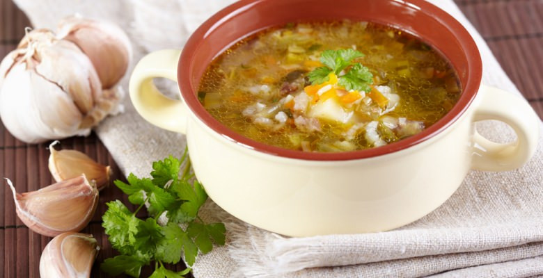 Рассольник — густой суп на мясном бульоне с перловой крупой и солеными огурцами с насыщенным вкусом и хорошо знакомым ароматом. Это блюдо можно готовить с разными мясопродуктами или без них, но обязательно с огуречным рассолом, благодаря которому суп получил свое название. Для рассольника прекрасно подойдут бочковые зеленые помидоры и лесные грибы.
