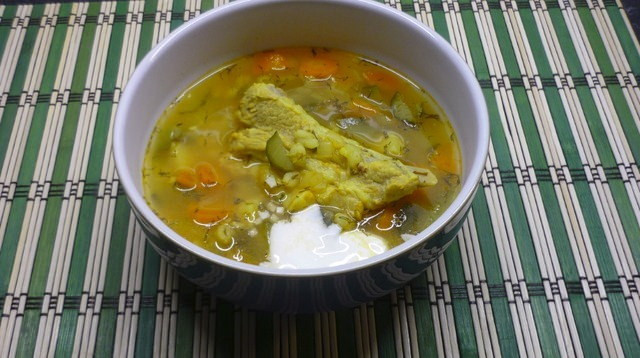 Рассольник с перловкой на свиных рёбрах