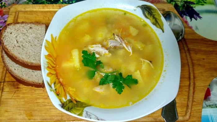 Гороховый суп с курицей и рисом