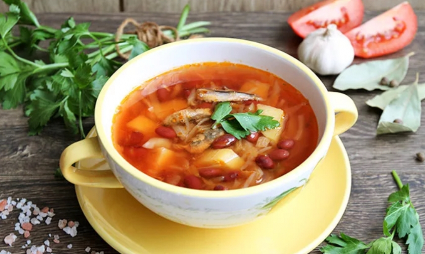 Постные щи с шампиньонами и фасолью