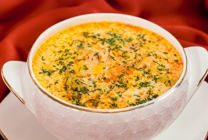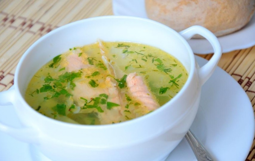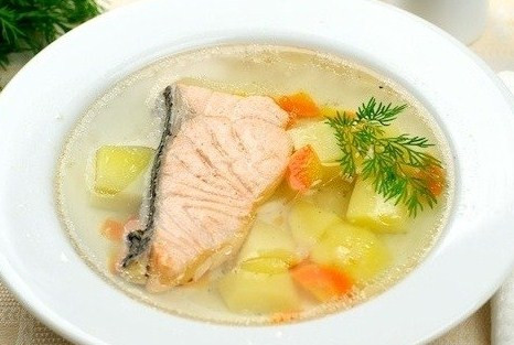 Более изысканный вариант ухи – суп из стейка семги лосося.